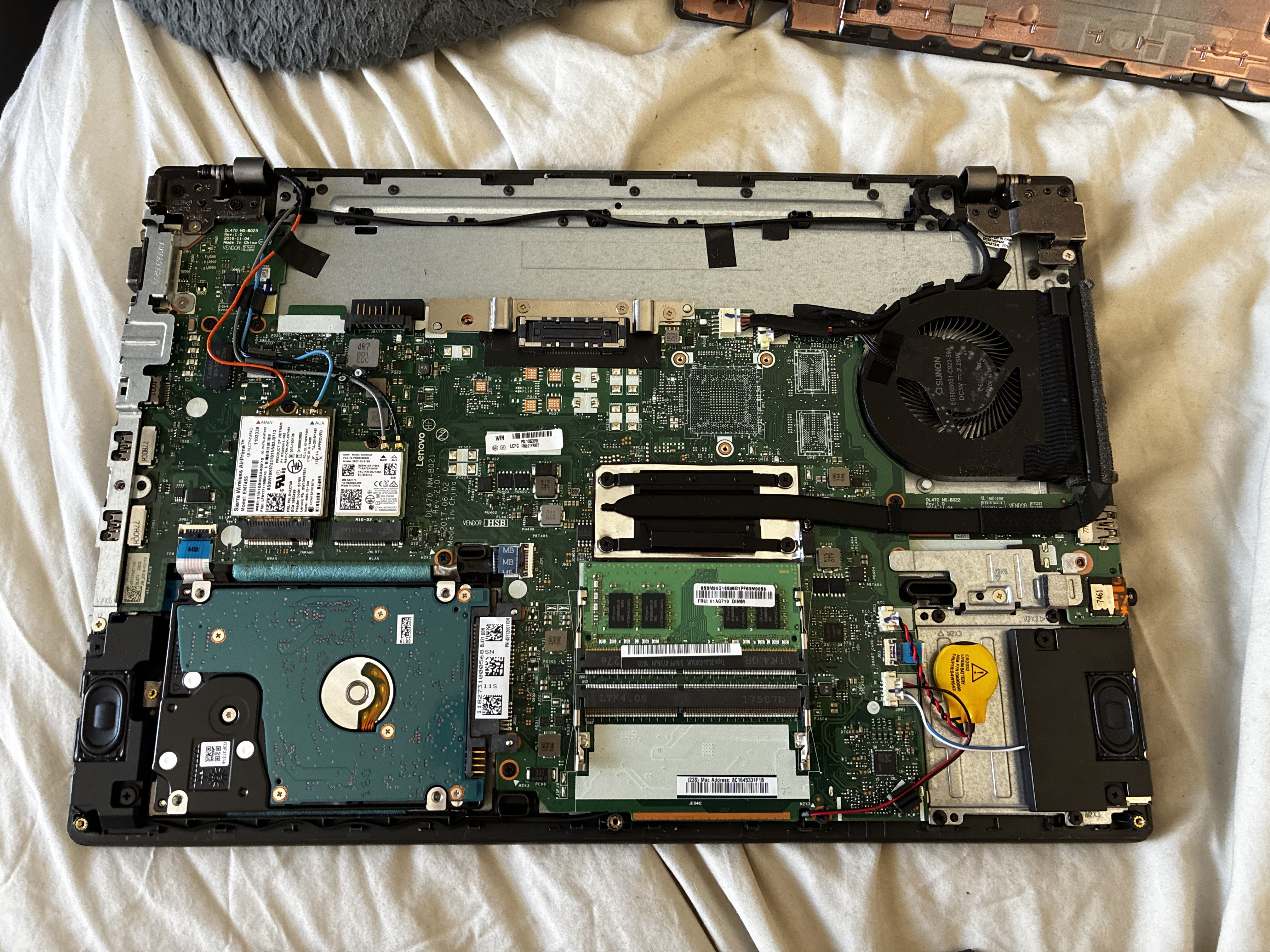 The SSD came on the following Sunday, and right away I decided to install it. Opening up the laptop for the first time, I was absolutely astonished by how modular this laptop was. All of the parts can just be screwed out, and I'm pretty sure it was using a CPU socket (which means I can replace it if I wanted to!)